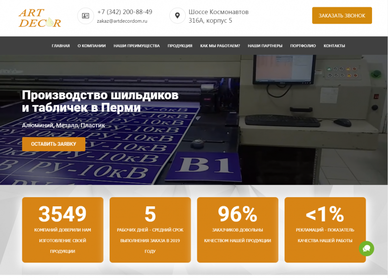 Разработали лендинг для компании «ArtDecor» (Пермь), занимающейся производством шильдиков, табличек и декоративных элементов. Основная задача — создать стильный сайт, который не только демонстрирует продукцию, но и продаёт. Учитывая, что клиент работает в нише, где важны и внешний вид, и точность исполнения, мы сделали ставку на уникальный дизайн и удобство восприятия информации.Ключевые решения проекта