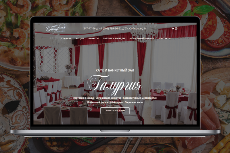 Для кафе и банкетного зала «Галургия» требовалось не просто создать сайт, а представить заведение в интернете как площадку для отдыха и проведения мероприятий — с акцентом на атмосферу, удобство связи и визуальную привлекательность. Также важно было запустить поток заявок через контекстную рекламу.Что было сделано: